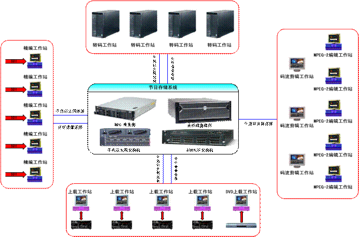 ?·具有MPEG-2多種碼流轉換功能和MPEG-2碼流快速粗編、精編功能。采用網(wǎng)絡(luò )化的存儲解決方案,能夠滿(mǎn)足快速的完成節目的編輯,制作和播出流程之間數據遷移的需要。