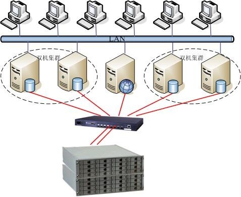 5)目前服務(wù)器為5臺,今后還要擴展。其中共2臺IBM255服務(wù)器做集群運行多媒體資源教學(xué)。一臺IBM255運行OA辦公應用,2臺SUN E450數據庫雙機應用。數據存儲容量設計要求達到4TB。