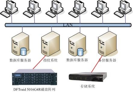 為滿(mǎn)足用戶(hù)需求,貴州公安廳指紋自動(dòng)識別對比系統的方案在設計時(shí),操作系統采用RedHat Linux Advance Server 2.1;數據庫系統采用Oracle 9i ;存儲系統采用性?xún)r(jià)比極高的DFTriad 5016G4R, 陣列系統使用高性能的64位PowerPC 750FX 600MHz CPU,極大的提高了產(chǎn)品的運算性能和傳輸性能。DFTraid 5016G4R充分考慮了用戶(hù)在線(xiàn)存儲的具體要求,為數據安全高速存儲提供了可靠安全的保證,控制器采用獨立硬件XOR(異或邏輯運算)芯片設計,不占用CPU資源,大大提升可靠性性能。系統采用16塊146GB SCSI硬盤(pán)配置成Raid5+Spare.使存儲系統更為安全可靠,備份軟件采用Veritas NetBackup多平臺自動(dòng)備份管理軟件,為數據的安全存儲和備份工作帶來(lái)極大可靠性。