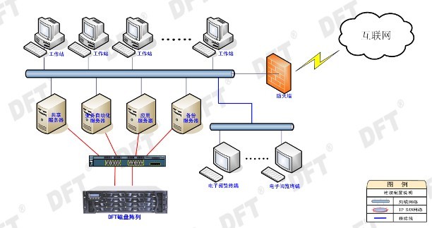 DFT提供的IP SAN存儲解決方案,不僅提供了大容量的存儲空間,同時(shí)保證了以后的容量擴展,實(shí)現了文化共享工程中大量數字資源的存儲。同時(shí)通過(guò)IP SAN存儲解決方案,可以讓存儲方便的接入到現有的網(wǎng)絡(luò )中,減輕了管理和維護的難度。