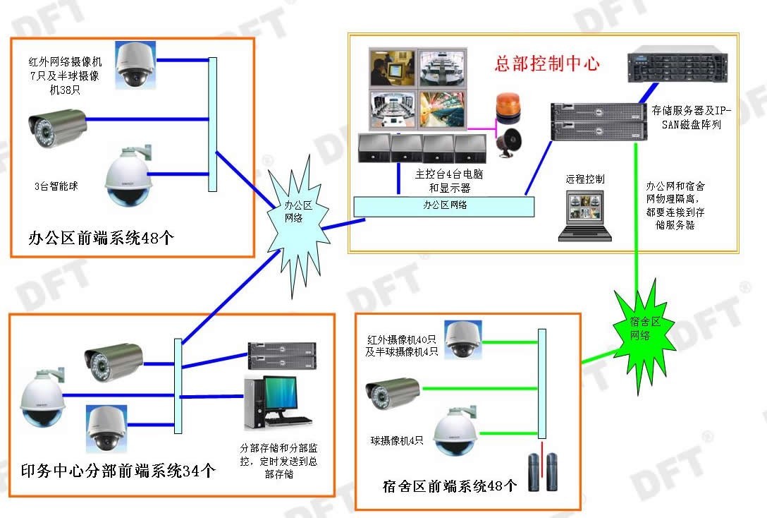 報社宿舍大院:宿舍區每棟樓房基本都有交換機,大部分位于單元樓頂,少數位于單元一樓。每棟樓房一個(gè)槍機,大院門(mén)口需要高級槍機,部分重要區域使用球機。宿舍區的網(wǎng)絡(luò )單獨,與辦公區的物理分開(kāi)。