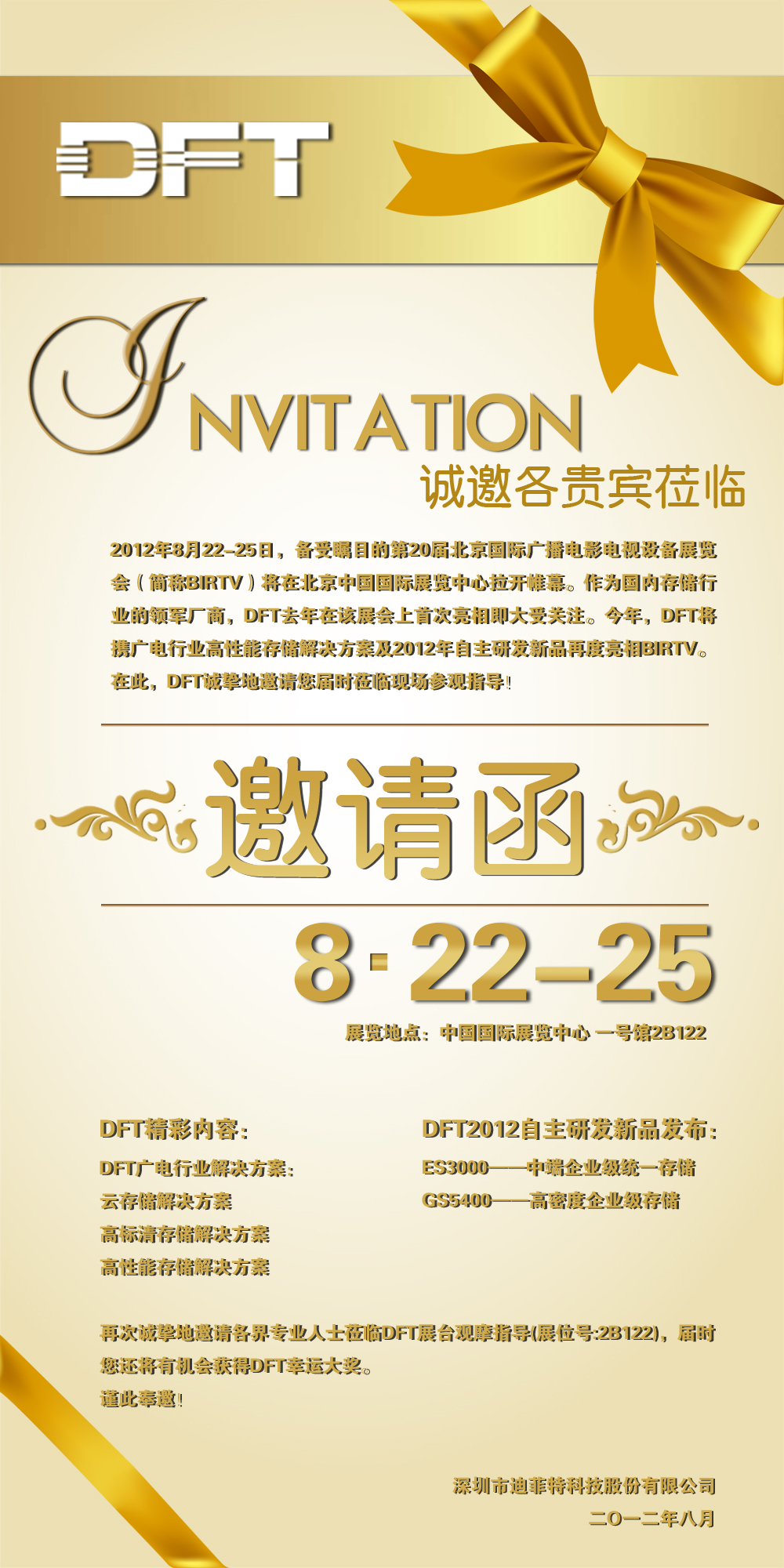 BIRTV 2012 DFT(展位號:2B122)邀請函