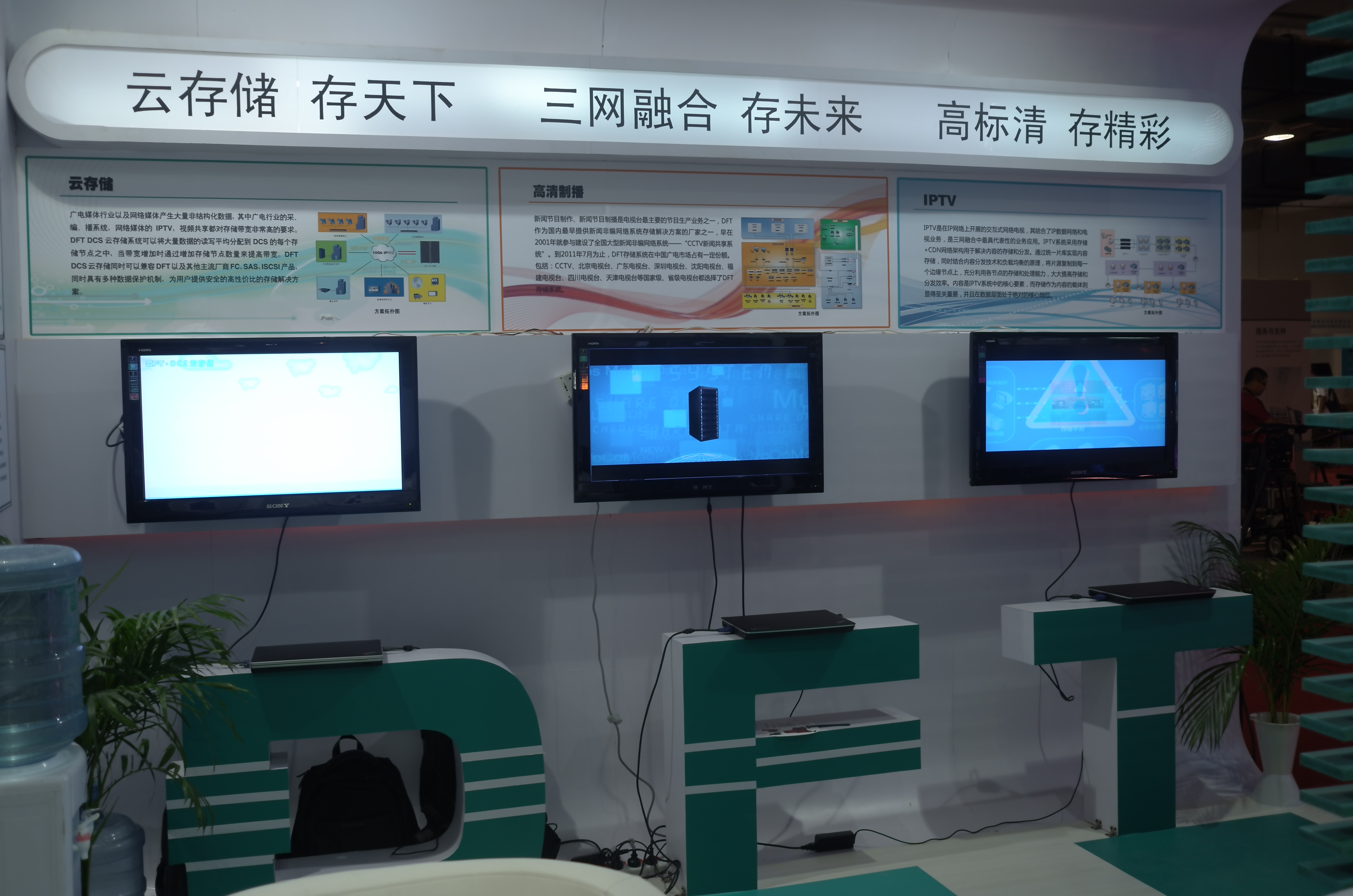 本屆BIRTV以 “3D、高清技術(shù)、云計算”等為重點(diǎn)內容,這是廣電行業(yè)當前最熱門(mén)話(huà)題和最新應用技術(shù)。特別是隨著(zhù)今年三網(wǎng)融合的實(shí)質(zhì)性推進(jìn),廣電行業(yè)出現了多種多樣的發(fā)展需求,從而也對存儲行業(yè)提出了新要求,創(chuàng )造了存儲行業(yè)發(fā)展新機遇?;诖朔N情況,DFT在解決方案展區推出了“IPTV、高清制播和云存儲”三大解決方案,集中展示了DFT針對廣電行業(yè)IPTV、高清技術(shù)、云計算等細分應用下的專(zhuān)屬解決方案和高性能存儲產(chǎn)品。