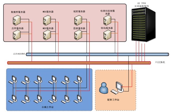 項目采用高效可靠的SAN+NAS系統結構,整體存儲架構采用了雙存儲實(shí)時(shí)備份,確保了包括存儲在內的整個(gè)網(wǎng)絡(luò )無(wú)單點(diǎn)故障,極大的提高了網(wǎng)絡(luò )化編輯的安全性。
