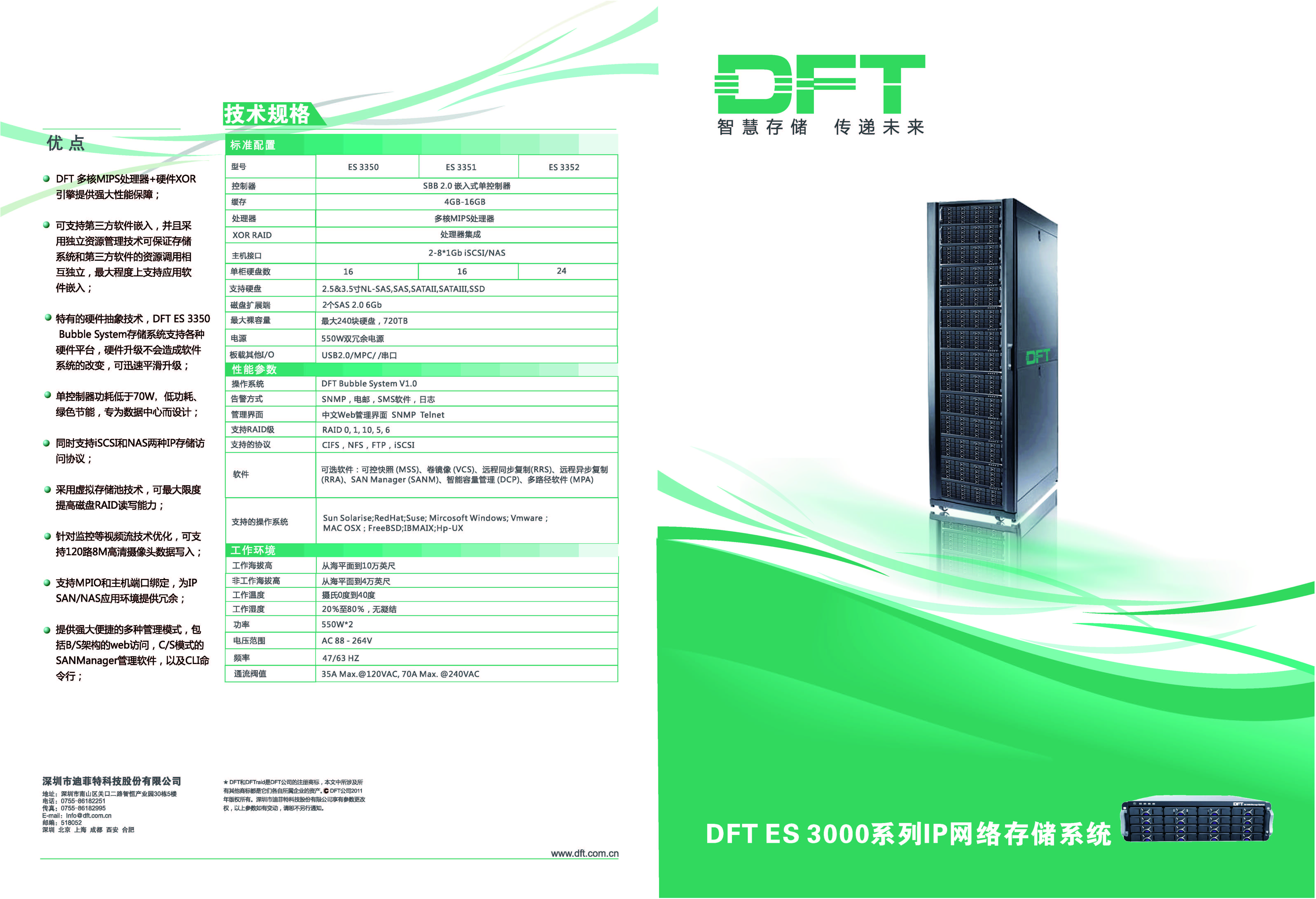 ES 335X系列硬件設計上采用了SBB 2.0,模塊化設計,PCI-E 2.0,SAS 2.0等新技術(shù),配合DFT Bubble System存儲軟件系統搭建一個(gè)高性能穩定的嵌入式存儲平臺。ES 335X系列提供了各種豐富的存儲高級軟件功能,如在線(xiàn)擴容,自動(dòng)精簡(jiǎn)配置,存儲虛擬化,遠程卷復制,SNMP,遠程集中管理等;為用戶(hù)提供了一款高性?xún)r(jià)比的IP統一存儲系統。